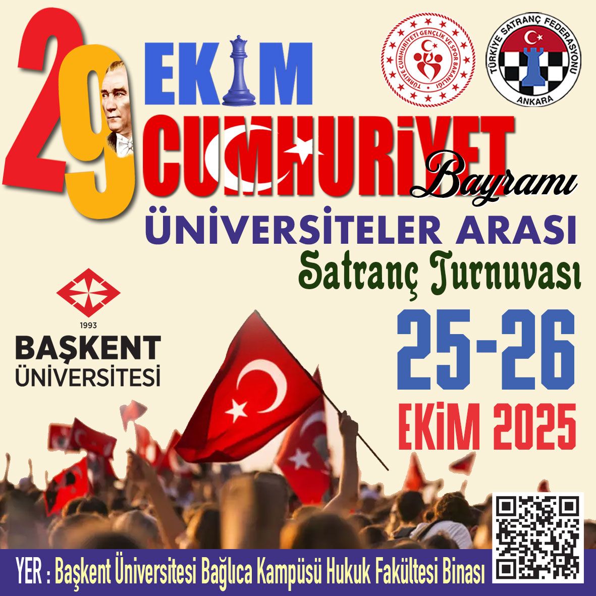 Ankara Gençlik ve Spor İl Müdürlüğü, TSF Ankara İl Temsilciliği ve Başkent Üniversitesi iş birliği ile düzenlenecek olan "Ankara 29 Ekim Cumhuriyet Bayramı Üniversiteler Arası Satranç Turnuvası" 25–26 Ekim 2025 tarihlerinde Başkent Üniversitesi'nde gerçekleştirilecektir.