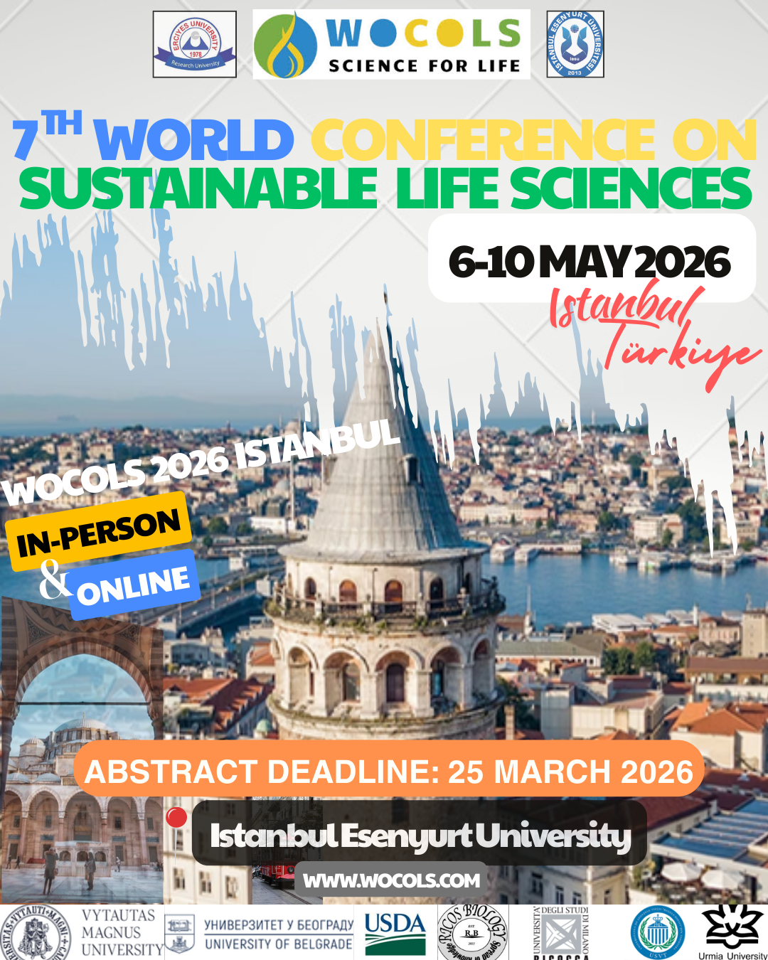 Sürdürülebilir yaşam bilimleri alanında dünyanın dört bir yanından önde gelen bilim insanlarını bir araya getiren 7. Dünya Sürdürülebilir Yaşam Bilimleri Konferansı (WOCOLS 2026), 6-10 Mayıs 2026 tarihleri arasında İstanbul Esenyurt Üniversitesi ev sahipliğinde Erciyes Üniversitesi iş birliği ile gerçekleşecektir.